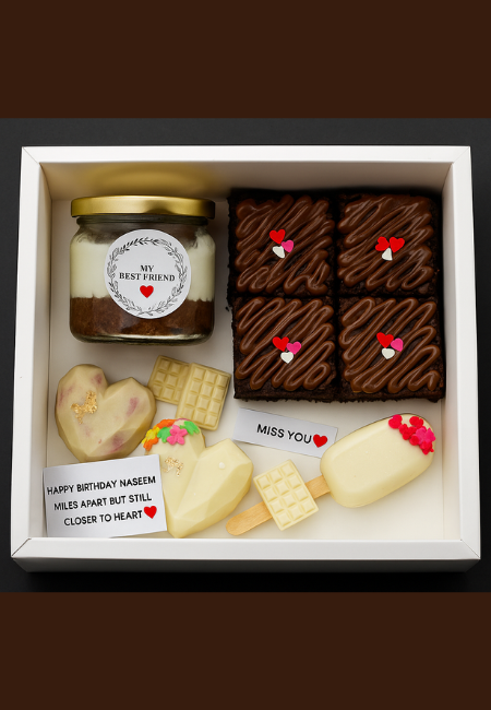 This hamper included a pinata heart which has our best seller brownies in it and 4 mini heartsicles